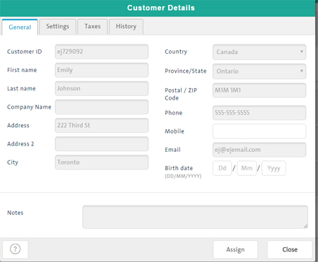 Notes - Use this field to add any notes about the customer.