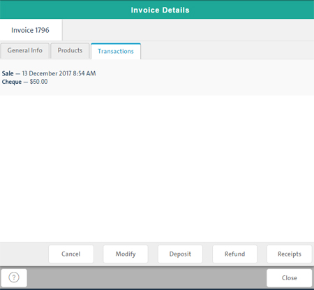 Once you have created a new invoice and processed the initial deposit, you can perform additional invoice tasks such as processing additional payments, viewing/updating details, refunding an invoice, processing a return on an invoice and cancelling an invoice.