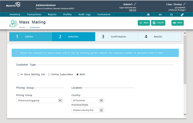 NOTE: The Mass Mailing feature is optional and may or may not be visible based on your Merchant Agreement with Moneris®.