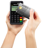 ● Hold the PAYD PIN pad with one hand, and swipe the card in the magnetic stripe reader with the other hand. This will prevent the PAYD PIN pad's internal contactless reader from inadvertently reading the card data as a contactless transaction.